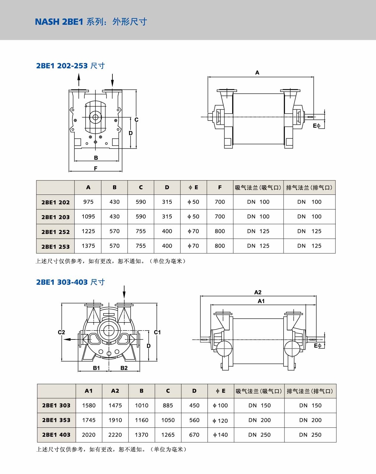 2BE1系列液環真空泵包含以下型號:2BE1 202,2BE1 203,2BE1 252,2BE1 253,2BE1 303,2BE1 353
